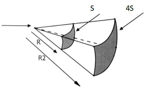 点声源是按照球面波进行辐射的,根据辐射的球面波的表面积即可计算出声压的变化:球面的表面积计算公式:S0球面=4πr²(r为球面的半径,也即辐射的距离),当r为原来的两倍,即辐射距离为2r时,球面的表面积为:S1球面=4π(2r)²=4S0球面,如下图: