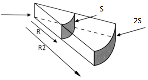 而线声源是按照柱面波进行辐射,根据辐射的柱面波的表面积即可计算出声压的变化:柱面的表面积计算公式:S0柱面=2πrh(r为球面的半径,也即辐射的距离),当r为原来的两倍,即辐射距离为2r是,柱面的表面积为:S1柱面=2π(2r)h=2S0柱面,如下图: